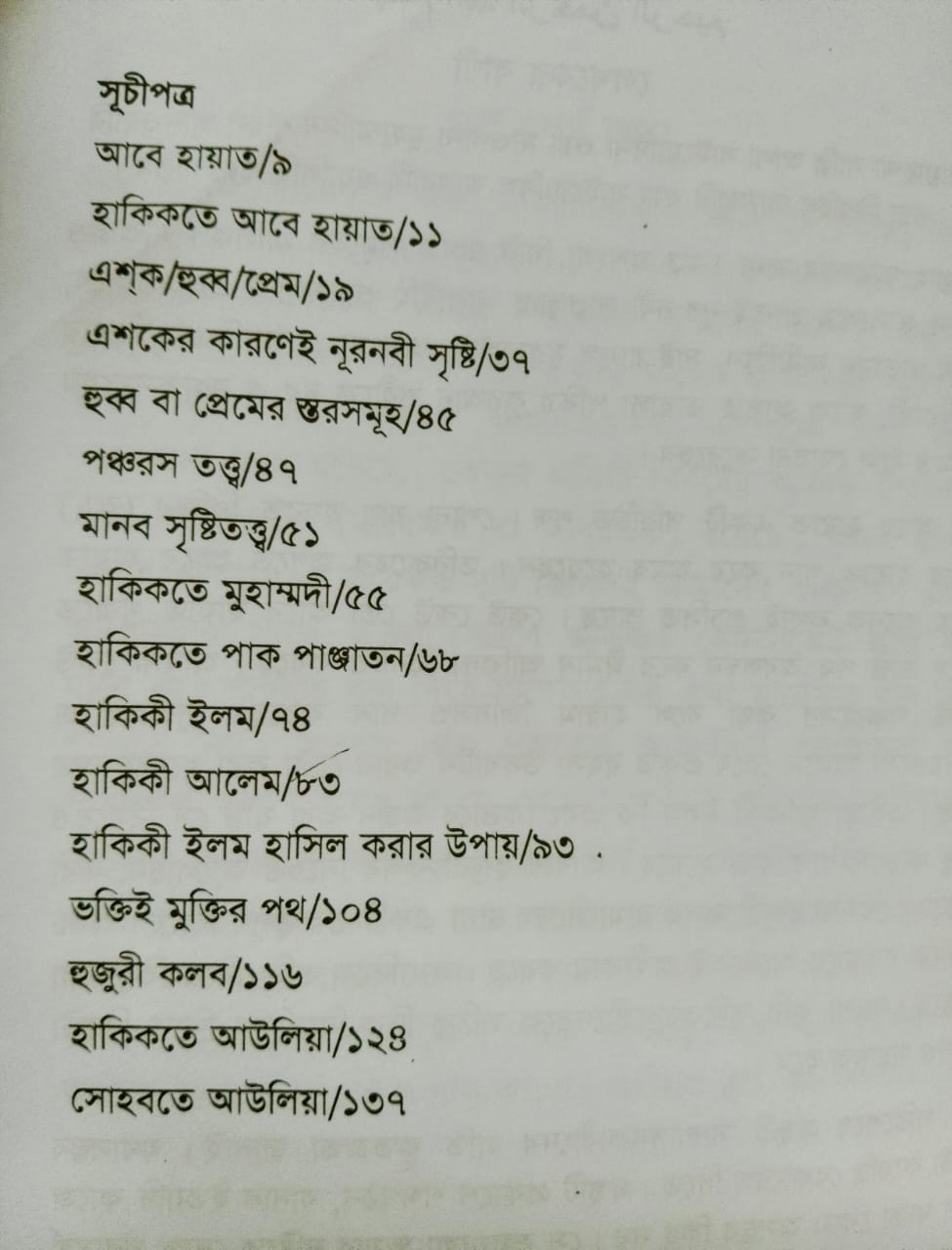 আবে হায়াত একটি পরিচিত শব্দ। শোনা যায় হযরত খিজির (আ.) আবে হায়াত পান করে অমর হয়েছেন। তরিকতের জগতে আবে হায়াত নিয়ে অনেক কথাই প্রচলিত আছে। কেউ কেউ তো আবে হায়াত খুঁজতে গিয়ে ভ্রান্ত পথ অবলম্বন করে ঈমান আকিদা বিনষ্টও করছে। আবার কেউ কেউ পঞ্চরসের কথা বলে হারাম জিনিসও পান করছে। সুতরাং এ বিষয়গুলো সামনে রেখে প্রকৃত রহস্য উদঘাটন করার চেষ্টা করা হয়েছে অত্র গ্রন্থে। এছাড়া হাকিকী ইলম কি এবং কিভাবে অর্জন করা যায় সে বিষয়েও কিছু আলোকপাত করা হয়েছে। আবার হুজুরী কলব নিয়েও আলোচনা করা হয়েছে। কেননা হুজুরী কলব নামাজীদের জন্য একটি গুরুত্বপূর্ণ বিষয়। অথচ এটাকে বর্তমানে অনেকেই অস্বীকার করছে। অন্যদিকে ভক্তি নিয়ে কিছু বলা হয়েছে। আশা করি তরিকতপন্থীদেরকে সঠিক দিক-নির্দেশনা দিতে কিছুটা হলেও সহায়ক হবে।
